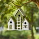 Glitzhome 14.75"L Oversized Washed Green Distressed Solid Wood 3-Room Villa Decorative Outdoor Garden Birdhouse with 3D Ladder