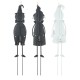 Place these cool metal Halloween figures on a stick in any arrangement or decor for a cute look. The perfect accent to any Halloween decoration. This set of stake features unique ghost, witch & pumpkin, with glitter words on the surface.