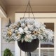 The 24"D snow flocked Pre-Lit Artificial Christmas Hanging Basket is crafted with Pine needle tips, Poinsettia and White Berries. It is designed to look and feel lifelike and will add a touch of charming light. Hang this basket decoration over any door, window or entryway to add a festive feel to any area of the house.