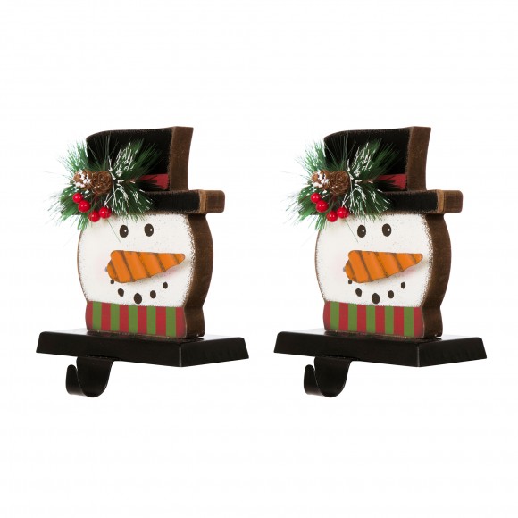 Glitzhome 2PK 6.50"H Wooden/Metal Snowman Head Stocking Holder