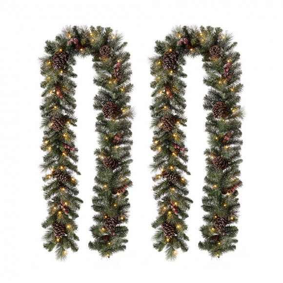 The 9 ft. garland provides ample length to easily adorn doors, mantles or banisters, making this versatile decoration ideal for any situation. Each of the 180 tips is modeled to a pine tree’s while the frosted design creates a winter wonderland around your home. Several large pinecones and berry decorations among the needles add an extra holiday touch to this garland. It creating the perfect holiday touch for your home.