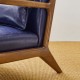 An accent chair is a great option for rounding out your seating arrangement with an extra seat that helps complement your space's style, also a versatile piece that helps put the finishing on your home. This accent armchair features a sleek silhouette with a low-profile design founded on four tapered legs for a Mid-century Morden look, made of a solid rubberwood frame with gorgeous walnut finish, and has a seat and back upholstered in PU leather with classic navy blue color to give it a wonderful look.