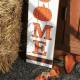 Features sentiment that reads Welcome, colorful finish and lovely 3D pumpkin. Two metal pieces decorated on the top and bottom make it unique. Words are firstly screen-printed and then attach corrugated iron sheets to it and the iron sheets are in weathered effect. Greet guests and passersby with a message of seasonal cheer with Pumpkin and WELCOME porch sign.