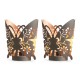 Glitzhome 9"L Set of 2 Black and Gold Metal Cutout Flying Butterfly Silhouette Solar Powdered Edison Bulb Outdoor Lantern.