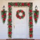 3. Artificial pine needles with red poinsettias and berries in rhythmic arrayed
