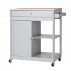 This cottage inspired cart has a slate frame, rubber wood top, a full length drawer, and cabinet with two spacious shelves inside, two open-tiered shelves with slatted bases, a towel bar, and four heavy duty locking caster wheels.
