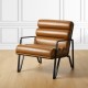 Glitzhome Modern Coffee Wavy Leatherette Accent Arm Chair with Black Metal Frame