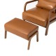 Glitzhome Set of 2 Mid-century Modern Yellowish-brown Leatherette Accent Stool with Walnut Rubberwood Legs